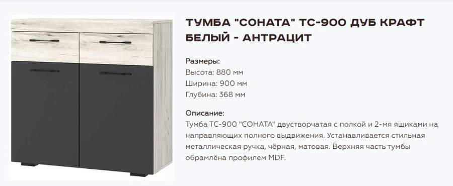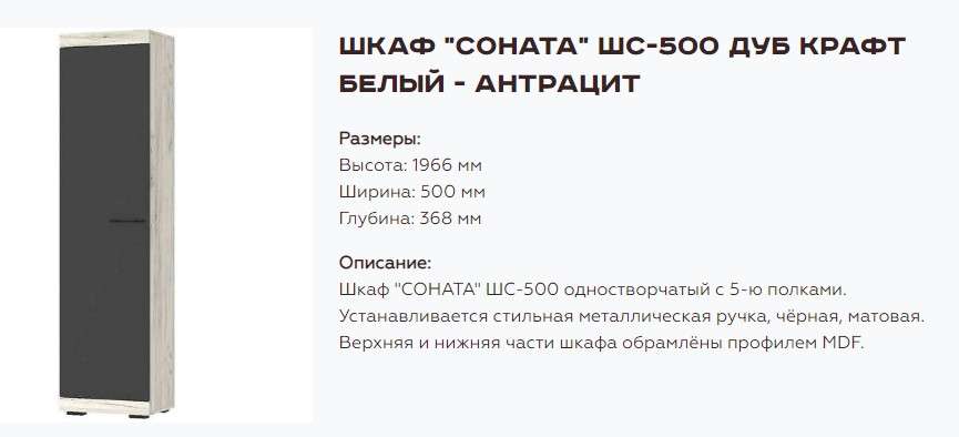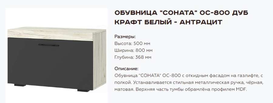 Прихожая «Соната» Дуб Крафт белый - Антрацит (Модульная)