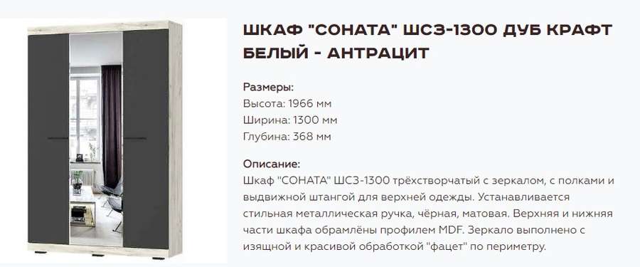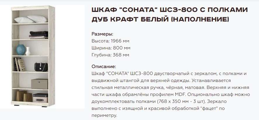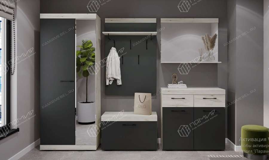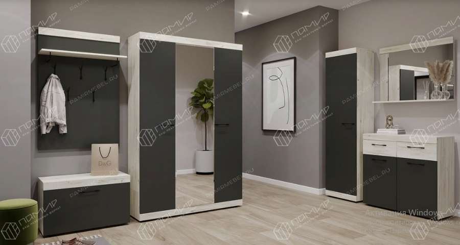 Цена указана за комплект на первой фото: Шкаф ШСЗ-800; Вешалка ВШС-800; Обувница ОС-800; Зеркало ЗС-900; Тумба ТС-900., Размер: 2500х368х1966мм, (ШхГхВ).