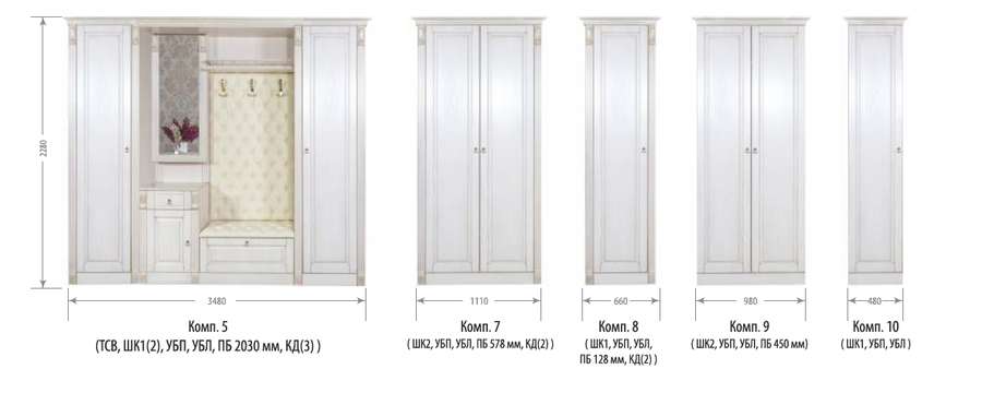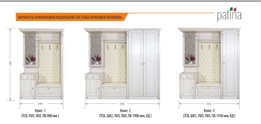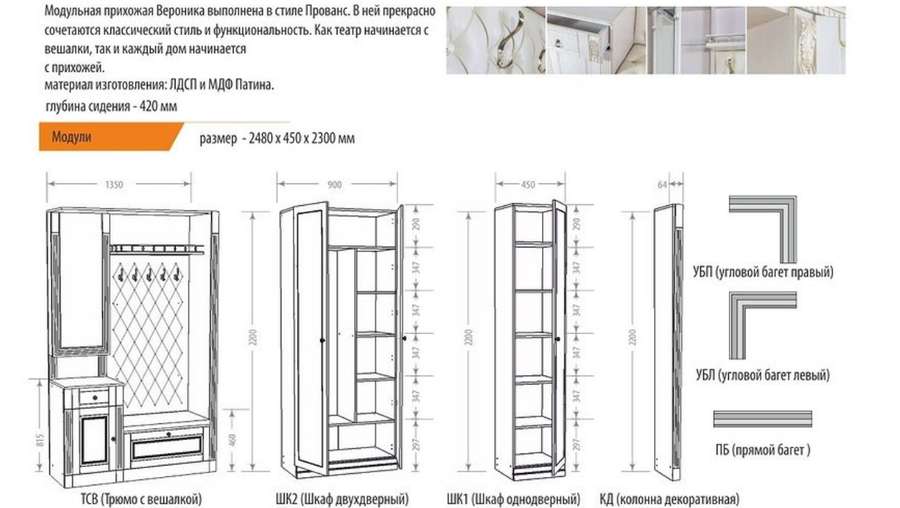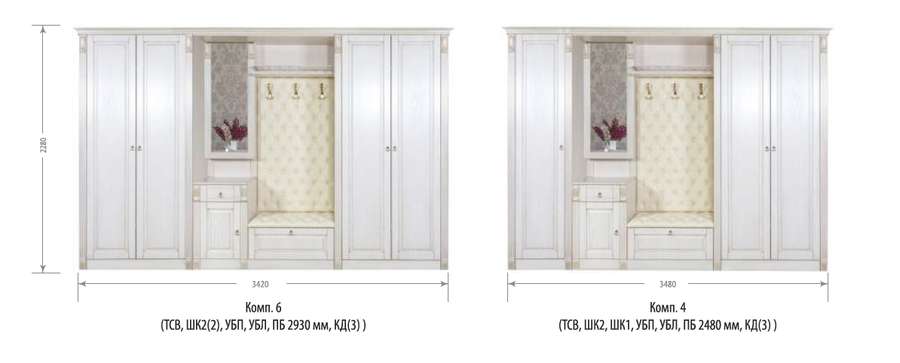 Модульная прихожая ВЕРОНИКА выполнена в стиле Прованс. В ней прекрасно сочетаются классический стиль и функциональность.