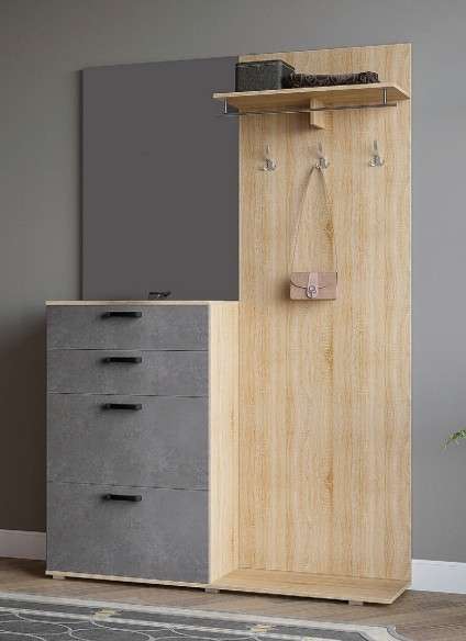 Современный стиль, экологичные материалы, надежная и удобная в использовании фурнитура. Функциональное решение для небольшой прихожей.