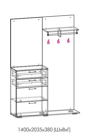 - Размер: 1400х2035х380 мм. (ШхВхГ).