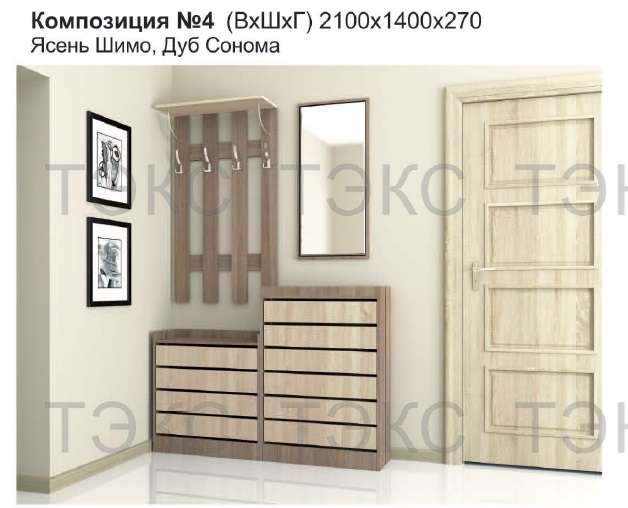 Цена композиции №4 в цвете Ясень шимо/ Дуб сонома- 11200 руб.