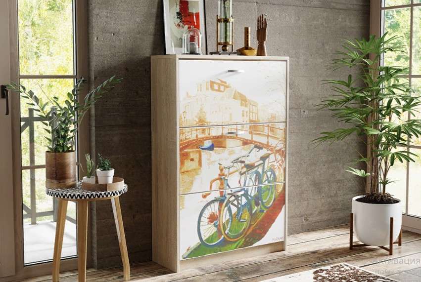 Необычная тумба для обуви с рисунком не только будет служить вам по назначению, но и станет украшением вашего жилища.