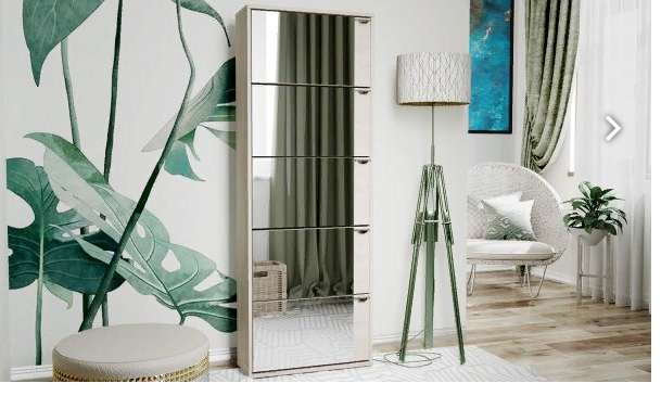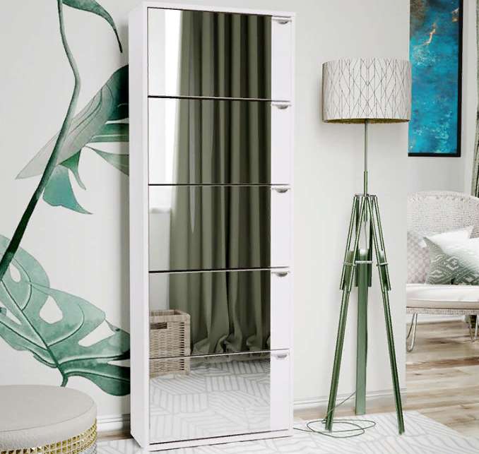 Необычная тумба для обуви с зеркальными фасадами станет изюминкой вашей прихожей.