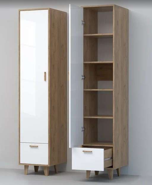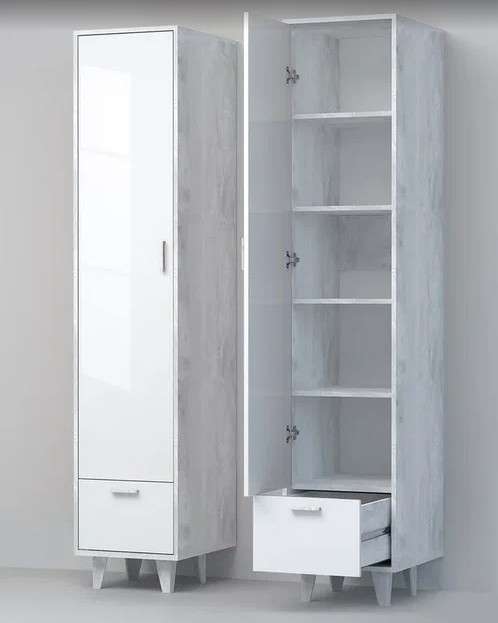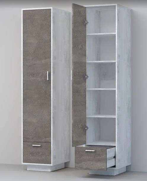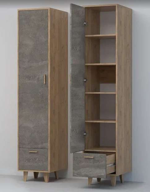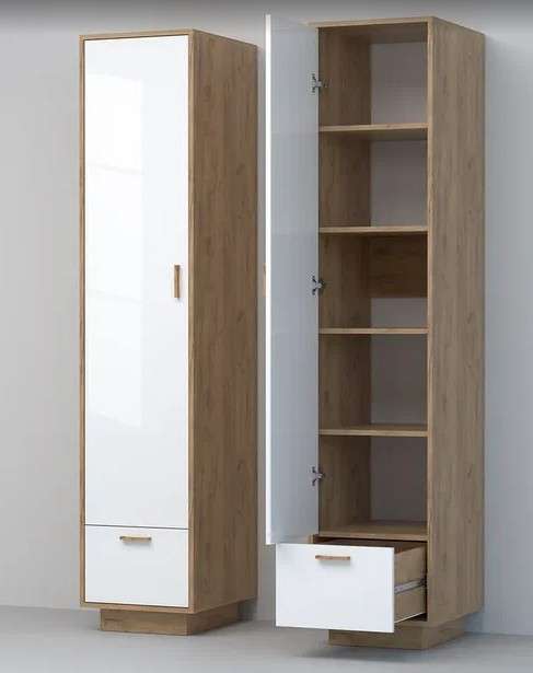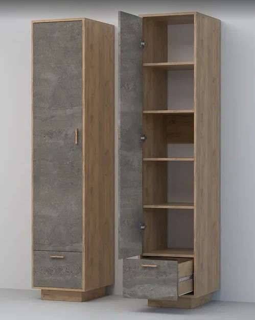 Благодаря своим небольшим габаритам пенал идеально впишется как в спальню, так и в гостиную, коридор. При этом он очень функциональный, вместительный, оснащён четырьмя просторными полками и выдвижным ящиком, где можно разместить одежду, бельё и другие предметы обихода.