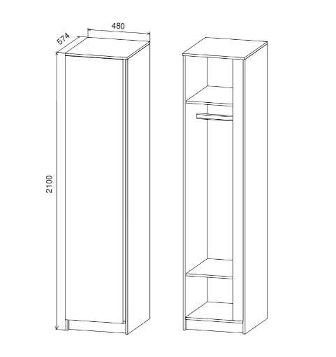 - Размер: 480х2100х574 мм, (ШхВхГ).