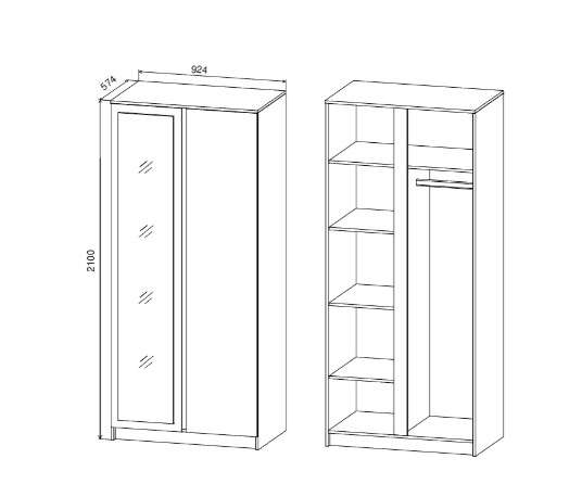 - Размер: 924х2100х574 мм, (ШхВхГ).