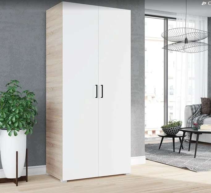 Функциональный, практичный двухдверный шкаф отлично впишется в интерьер любой спальни. Он вместит в себя достаточное количество вещей благодаря наличию антресольной полки и металлической штанги.