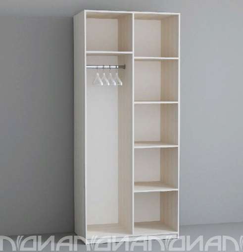 Внутреннее наполнение: отделение с четырьмя полками для белья, антресольная полка и металлическая штанга для одежды.