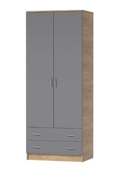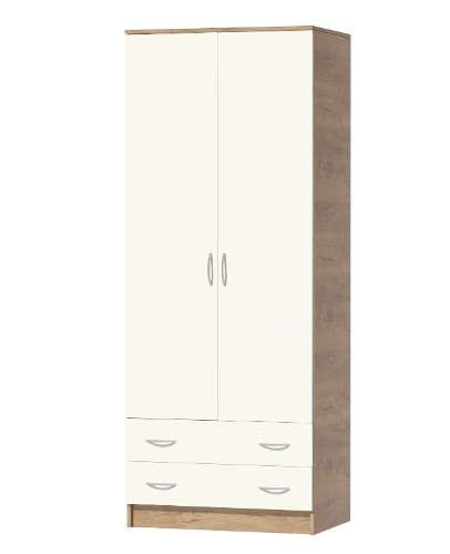Шкаф из модульной коллекции КЭТ-7, выполнен в модной цветовой гамме. Функциональный, практичный двухдверный шкаф отлично впишется в интерьер любой спальни. Он вместит в себя достаточное количество вещей благодаря наличию антресольной полки, металлической штанги и двух выдвижных ящиков.