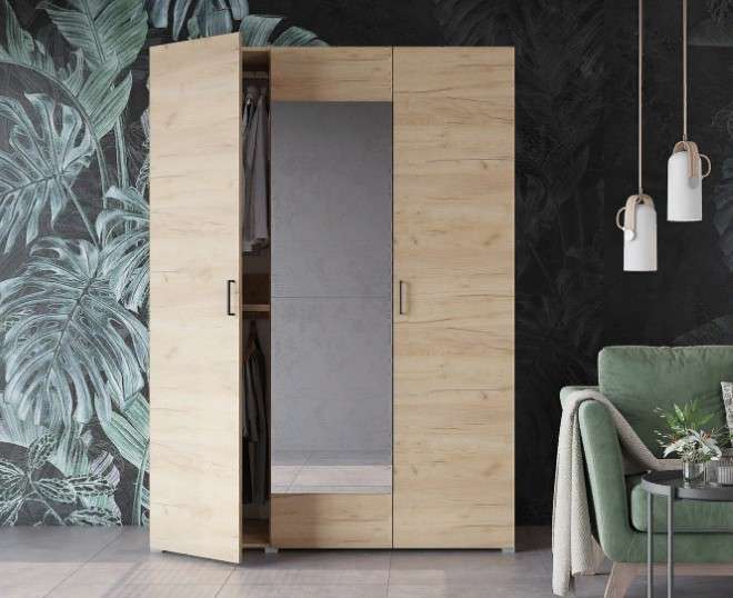 Шкаф 3-х дверный 1500 в базовой комплектации идет с четырьмя штангами, к нему можно докупить полки и зеркала.