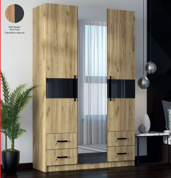 Шкаф 3-х ств. «Черника» - Удачный вариант для спальни или гостиной. Такой шкаф отлично подойдет как во взрослую, так и в комнату подростка. Боковые секции оснащены выдвижными ящиками, внутреннее наполнение — полки и штанга для длинных вещей. Благодаря эргономичному расположению элементов хранить вещи в таком шкафу будет удобно. А контрастные детали в оформлении фасада шкафа создают необходимые акценты в помещении.