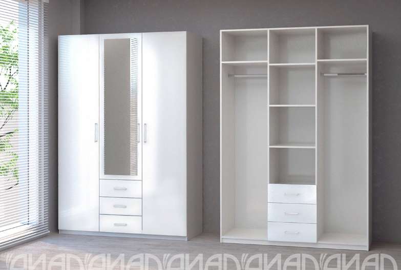 Шкаф трёхстворчатый с ящиками идеально впишется в современный дизайн комнаты, делая её светлее и воздушнее за счёт белоснежных глянцевых фасадов.