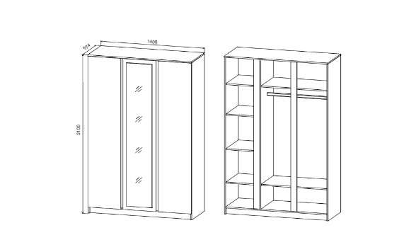 - Размер: 1400х2100х574 мм, (ШхВхГ).