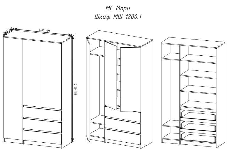 Шкаф 3-х ств. «Мори» МШ 1200.1 (ДСВ)