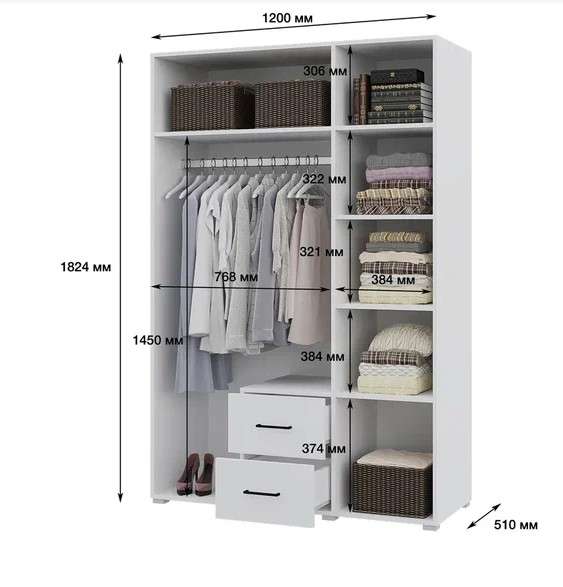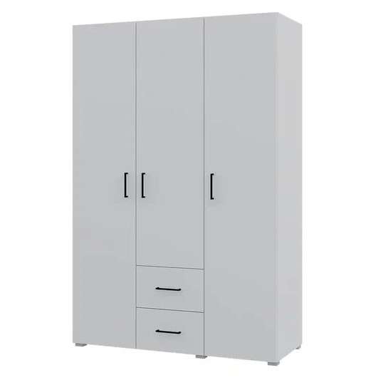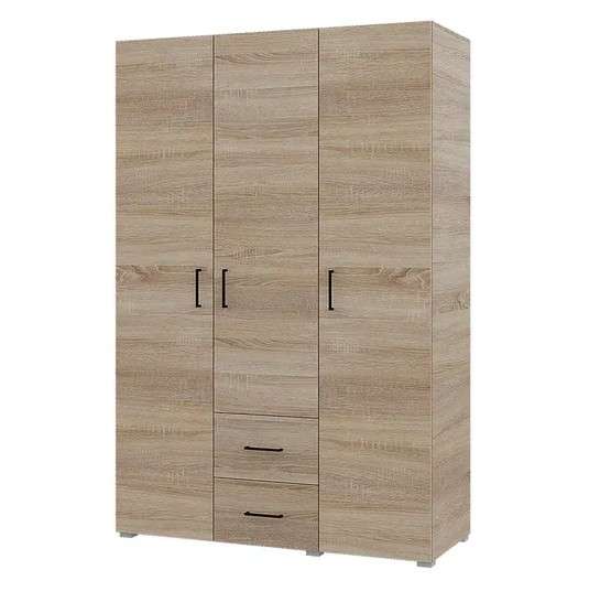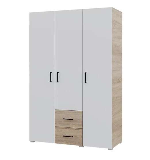 Функциональный, практичный трехдверный шкаф отлично впишется в интерьер любой спальни. Он вместит в себя достаточное количество вещей благодаря наличию полок, металлической штанги и ящиков.