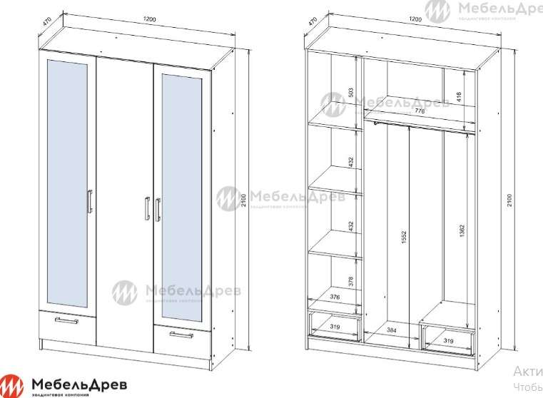 Размер: 1200х2100х470, (ШхВхГ).