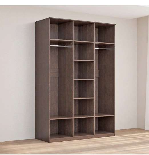 Внутреннее наполнение: центральная секция с пятью полками, две крайние - с двумя полками и металлической штангой для одежды.
