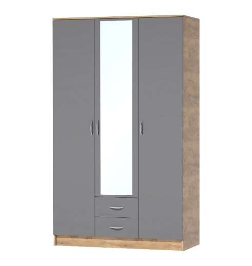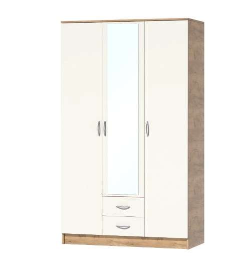 Внутреннее наполнение: две крайние секции со штангой для одежды и антресольной полкой, центральная - с тремя вместительными полками и двумя выдвижными ящиками.
