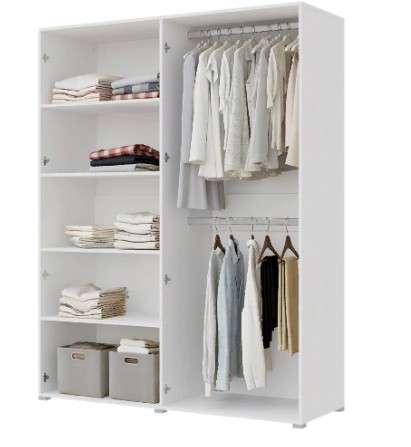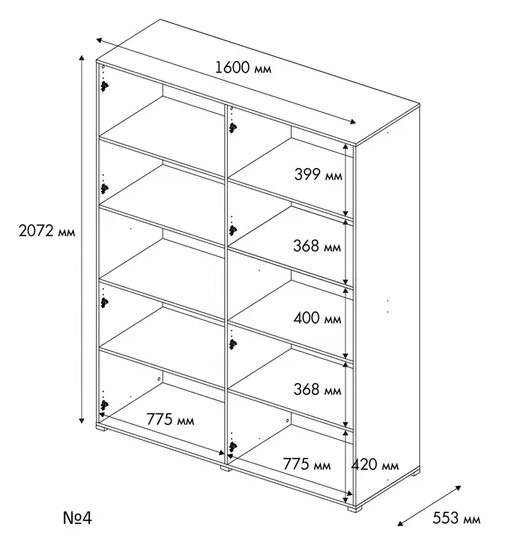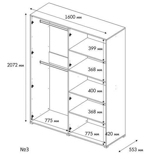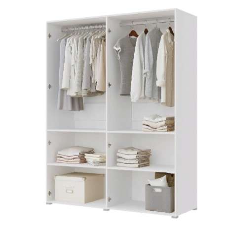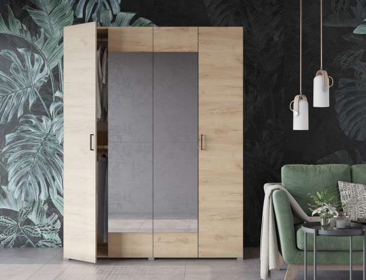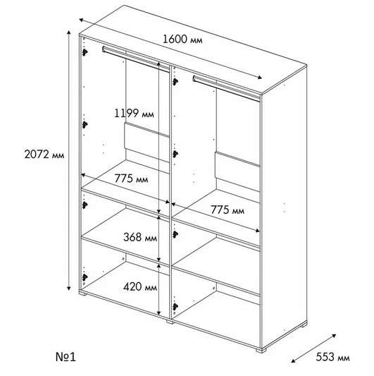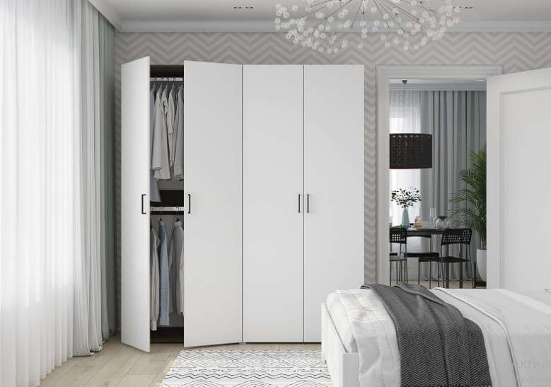 Шкаф 4-х дверный 1600 в базовой комплектации идет с четырьмя штангами, к нему можно докупить полки и зеркала.