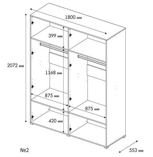 - Размер: 1800х2072х570 мм, (ШхВхГ).