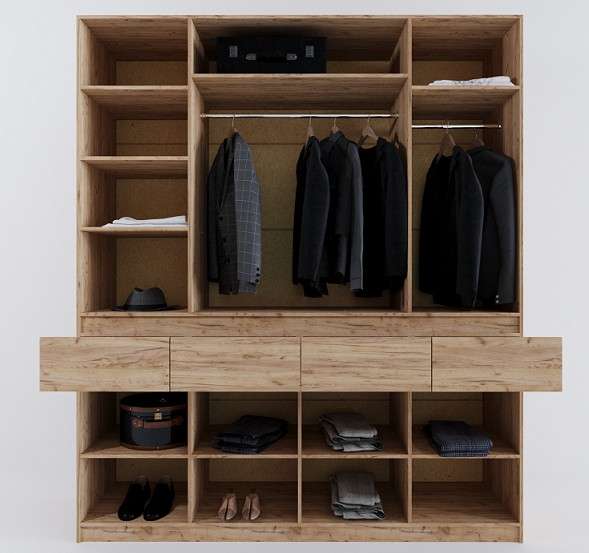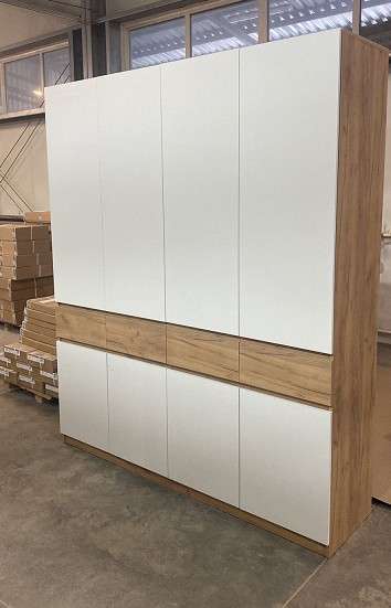 Каждая створка шкафа "ТУРИН" усилена дополнительными петлями, что обеспечивает легкий и безопасный доступ к вещам внутри. Кроме того, шкаф оснащен выдвижными ящиками на шариковых направляющих П/В, которые позволяют организовать хранение вещей максимально удобным образом.