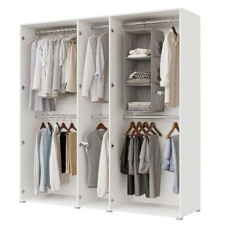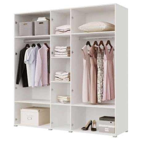 На сайте указана стоимость Шкафа Базового с шестью штангами с фасадами Белый ,Венге и Сонома - 13500 руб. Фасады по цвету можно комбинировать. И если шкаф нужен только с полками-берем три комплекта полок.