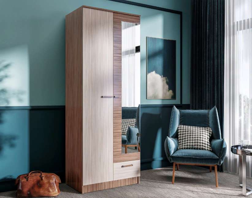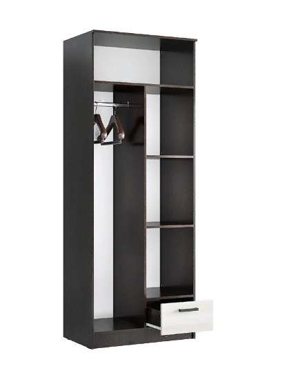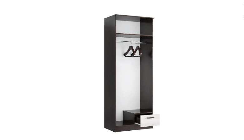 Двухстворчатый шкаф с полкой ,штангой и ящичком, выполнен в популярных цветах ,позволит с удобством разместить предметы своего гардероба.