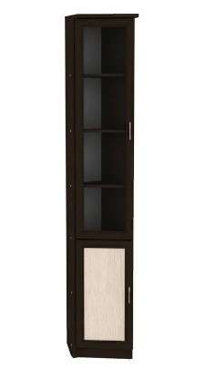- Верхняя состоит из четырех вместительных книжных полок, которые закрыты стеклянной дверцей,