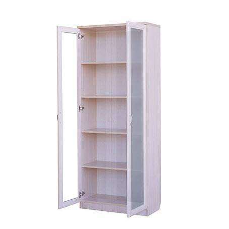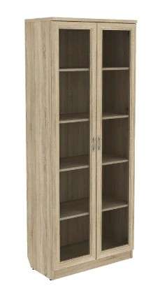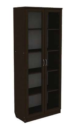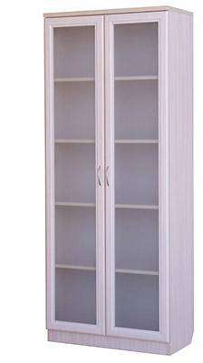 - Шкаф для книг имеет 4 полки внутри за распашными дверцами со стеклом.
