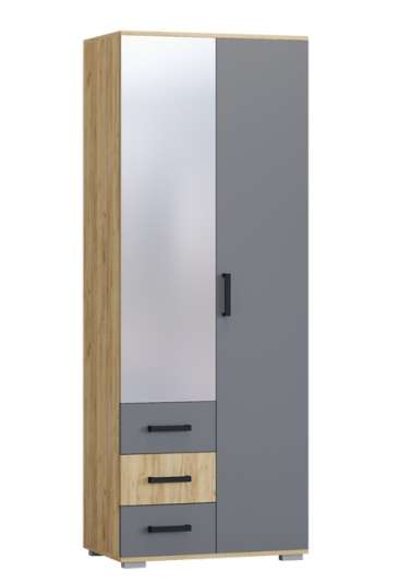 Шкаф двухстворчатый «Нота-11» имеет 3 ящика, зеркальную дверь. Шкаф оснащен металлической перекладиной и полками для одежды.