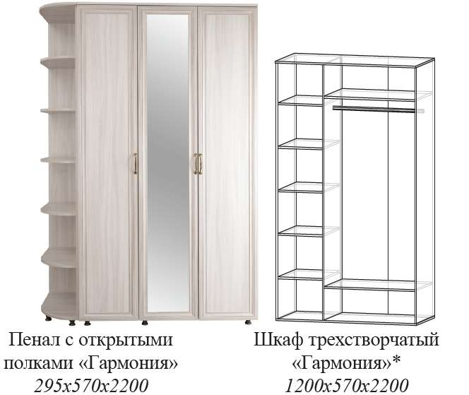 Шкаф ГАРМОНИЯ 3-х створчатый с зеркалом и без