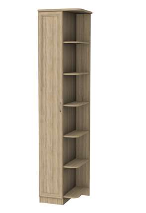 - Шкаф представляет собой комбинацию открытых угловых полок с закрытой секцией