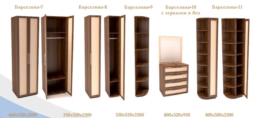 - Шкаф однодверный Барселона-6: ( 330х520х2300) - 8600/ 9200 руб.