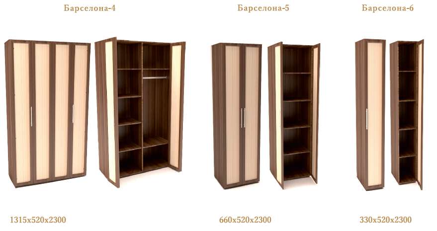 - Шкаф 2-х дверный Барселона-5: ( 660х520х2300) - 12800/ 13800 руб.