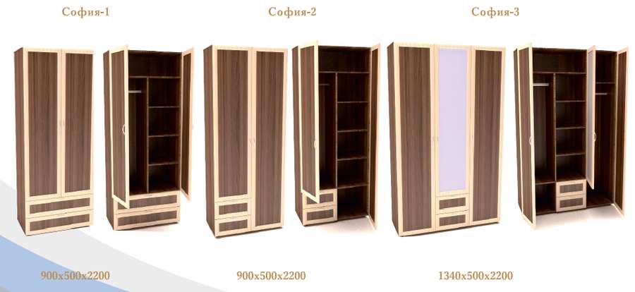 - Шкаф София-1: 900х500х2200 - 18300 руб.