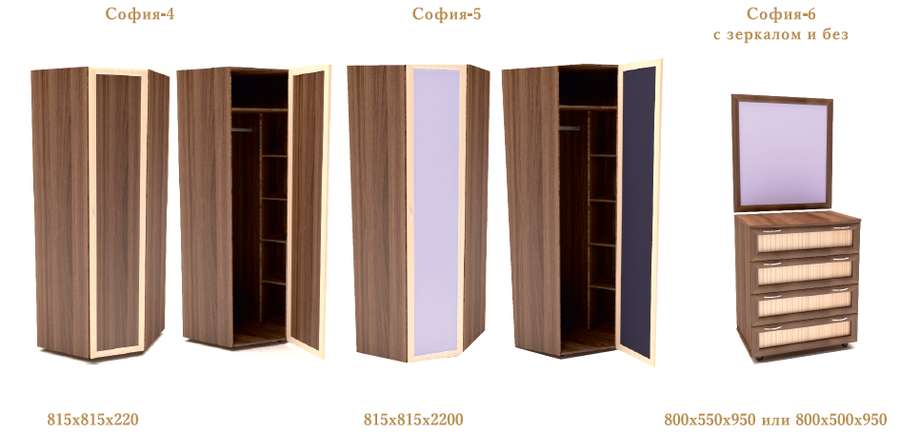 - Шкаф София-5 с зеркалом: 815х815х2200 - 16000 руб.