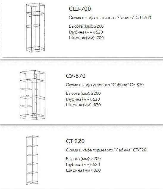 - Шкаф "Сабина" СШ-700, 700 х 2200 х 520- 6500 руб.