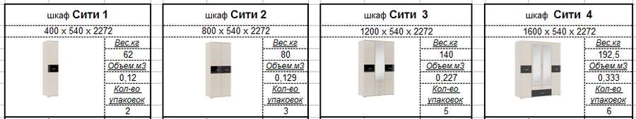 - Шкаф 4-х ств. СИТИ 4 : 1600х540х2272 мм - 22500 руб.