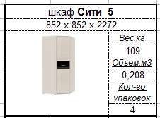 - Шкаф угловой СИТИ 5 : 852х852х2272 мм - 13300 руб.
