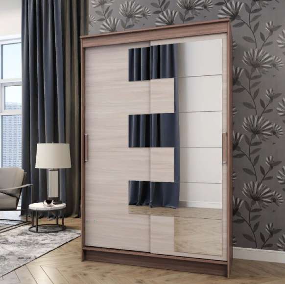 Удобный и вместительный шкаф-купе ЭЛЕГАНТ 3 (МФ Эра) благодаря лаконичному дизайну хорошо подойдет интерьеру в стиле лофт или минимализм. Особенностью шкафа являются фасады, декорированные оригинальными зеркальными накладками. Шкаф отлично будет смотреться в спальне или прихожей. Шкаф-купе разделен на два отделения, одно из которых предназначено для размещения одежды на вешалках и комплектуется штангой. Второе отделение комплектуется полками.