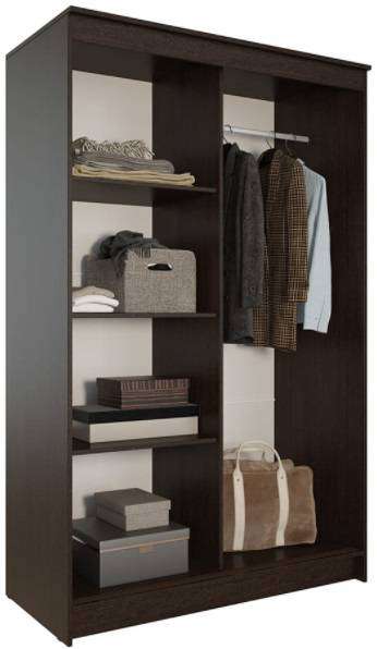 В одной половине - полки, в другой - штанга для одежды на плечиках. Современный дизайн.