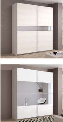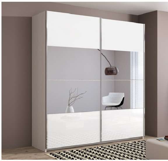 Размер и цена шкафа-купе с дверьми с зеркалами и Белым глянцем: