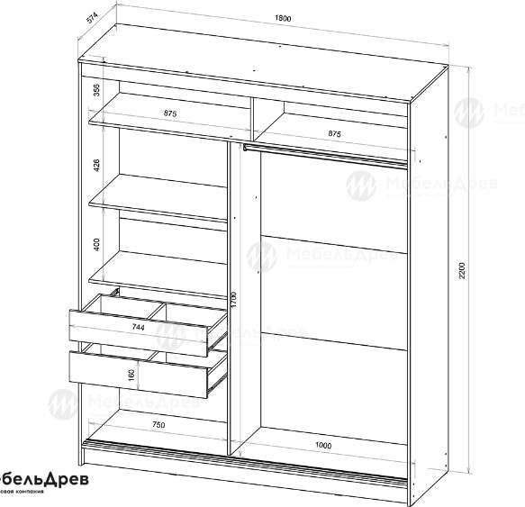 - Размер: 1800х2200х574, (ШхВхГ). - 18900 руб.