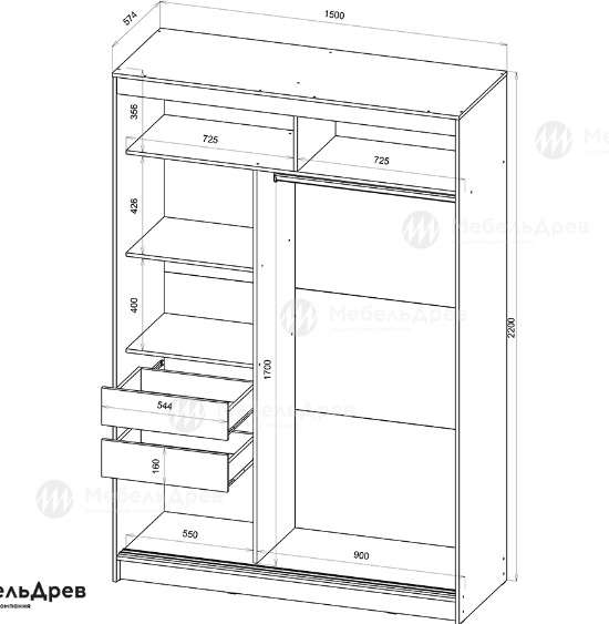 - Размер: 1500х2200х574, (ШхВхГ). - 15900 руб.