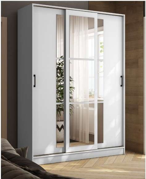Практичный шкаф со стационарной штангой и отсеком с полками. Фасады украшены зеркалами с фацетной обработкой. Широкий размерный ряд, продуманная система хранения вещей.
