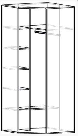 Угловой шкаф-практичная система хранения позволяющая рационально использовать внутреннее пространство мебели для размещения всего необходимого. Наполнение шкафа состоит из отдела с шестью полками,штангой для одежды. Модель может комплектоваться зеркалом.