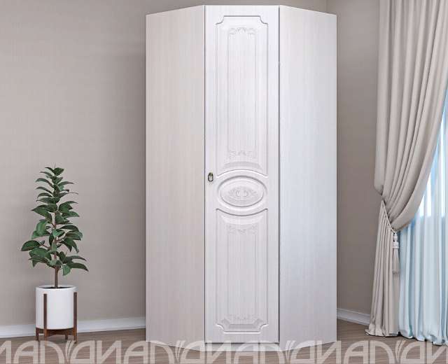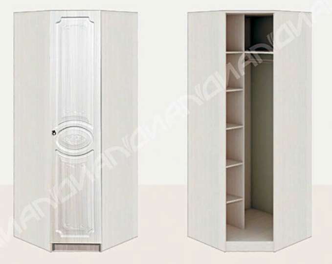 Угловой шкаф выполнен в классическом стиле. Изящные формы, рельефный рисунок на фасадах и стилизованные под старину мебельные ручки сделают вашу комнату самым уютным местом в доме!