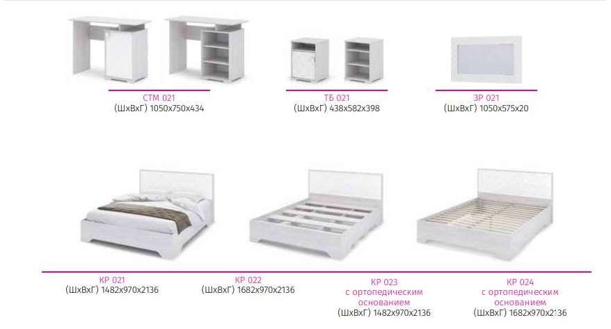 Цена на сайте указана за комплект на первой фото: Кровать 1,6м с настилом, две тумбы, Шкаф ШК 021,Шкаф угловой ШУ 021, Шкаф ШК 022.