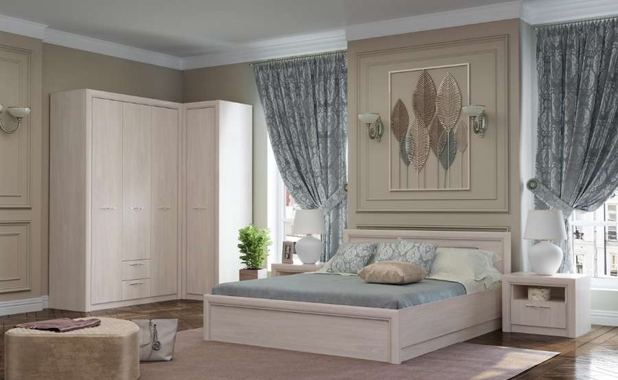 Спальня - это помещение, где мы отдыхаем, набираемся сил и энергии на каждый следующий день, наслаждаемся радостью семейной жизни. Светлые тона мебели помогают визуально расширить пространство и создать приветливую атмосферу. Мебель изготавливается из ЛДСП и МДФ зарекомендовавших себя заводов «Карелия ДСП», «Kronospan», «Kronostar», «ВохтогаЛесДрев».